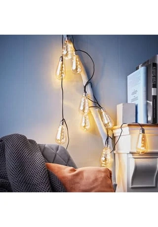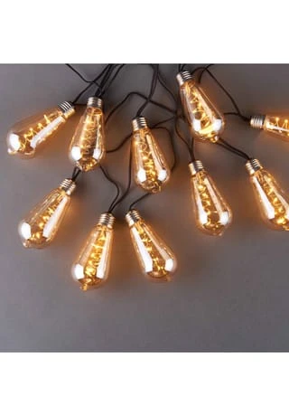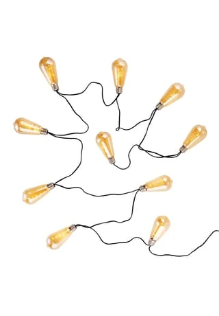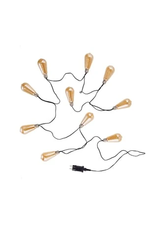 Die Bulb Lights Lichterkette bringt mit 10 LED in Glühbirnen-Optik echten Vintage Flair in Ihre vier Wände. Entdecken Sie die getönt leuchtenden Glühbirnen als stilvolle Lichtquelle. Ob als Winterzauber zur Weihnachtszeit oder an warmen Sommerabenden auf dem überdachten Balkon, die Lichter spenden genügend Licht, um jeden Abend gemütlich und einzigartig zu machen.
