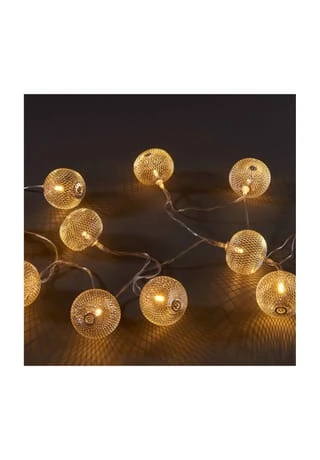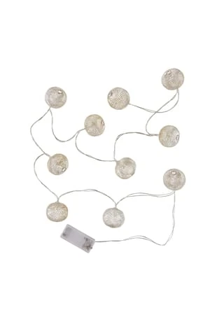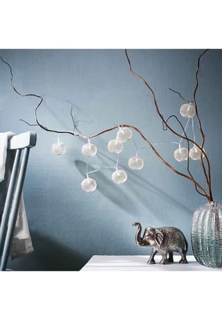 Was den Asia Style betrifft, geht die Osaka Lichterkette mit USB-Batteriefach dekorativ voran: 10 Lichter in filigranen Metallbällen setzen warm weiße Akzente in Ihrem Zuhause, z. B. im Schlafzimmer oder im Wohnbereich. Betrieben mit 2 x AA Batterien, lässt sich die Lichterkette stimmungsvoll auch auf dem gedeckten Tisch arrangieren oder nutzen, um z. B. einen Spiegel zu erhellen.