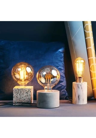 Stil hat, wer Stilo hat: Die puristische Tischleuchte mit Betonfuß lässt trendige Glühbirnen (nicht im Lieferumfang enthalten) ohne jeden Schnickschnack strahlen. Mit Kippschalter. Weitere Varianten erhältlich.