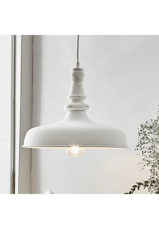 Gedrechselter Mangoholzabschluss mit Antik-Finish. Formschöner Eisenschirm. Eine klassische Hängeleuchte aus natürlichen Materialien. Der Schirm wird aus reinem Eisen geformt, der gedrechselte Abschluss besteht aus massivem Mangoholz. Der natürlich schöne Anstrich mit Antik-Charakter unterstreicht den zeitlosen Charme.