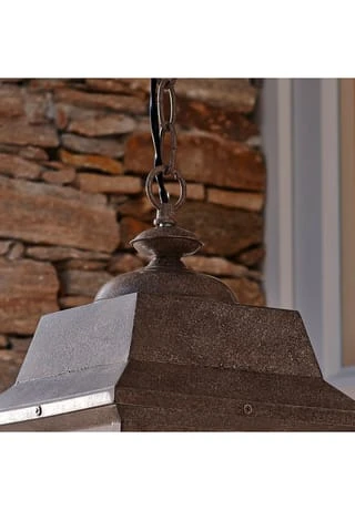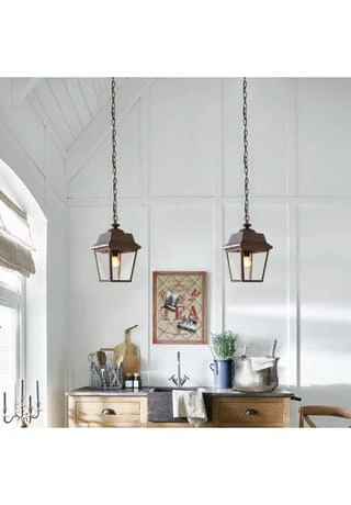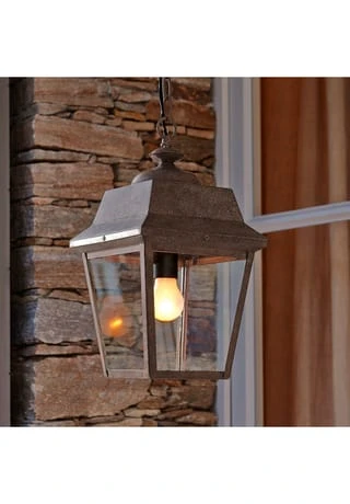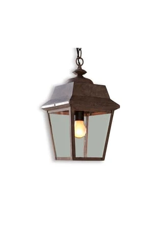 Diese Hängelampe ist perfekt für überdachte Terrassen. Ihre klassische Form und ein authentisches Patina-Finish machen sie zu einem Klassiker. Sie wird aus reinem Eisen gefertigt und mit sehr hochwertigen, transparenten Glaseinsätzen ausgestattet. Die Laterne hängt an einer robusten und ebenso hübschen Kette.