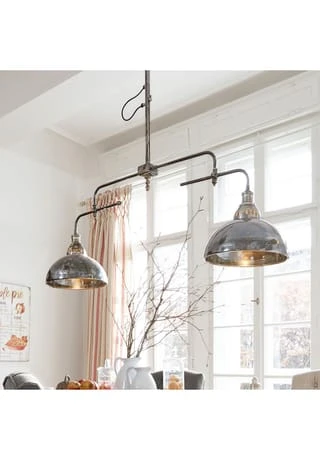 Mit edlem Antik-Finish – als Hingucker über Esstisch, Anrichte & Co. Eine Leuchte, die Sie ein Leben lang begleitet. Zeitlos-schön und ein echtes Highlight Ihrer Einrichtung. Die imposante Hängelampe aus Messing ist stattliche 1,15 Meter lang und verfügt an jedem Ende über einen edlen Metall-Schirm mit Antik-Finish. Selbst einen großen Esstisch oder eine lange Arbeitsplatte können Sie so mit einem Klick perfekt ausleuchten. Das Beste: Das Design fällt – trotz des edlen Finishs – schnörkellos aus. So integriert sich die schwere Leuchte im Handumdrehen in jede Einrichtung.