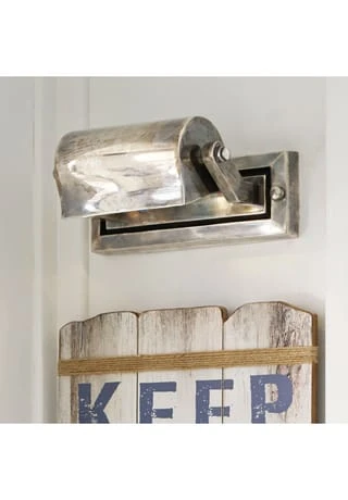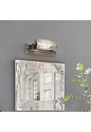 Schwenkbarer Lampenschrim, daher perfekt zur Ausleuchtung von Spiegeln oder Bildern. Im zeitlos-eleganten Design mit Antik-Finish. Die klassische Optik und die schwere Messingqualität mit einem mattglänzenden Antiksilber-Finish harmonieren mit Möbeln im Industrial-Look oder einer Einrichtung in Bauhaus-Philosophie. Der bewegliche Schirm leuchtet auf den Punkt unter der Lampe platzierte Spiegel oder Bilder aus. Auch im Badezimmer oder der Küche macht sie sich gut – also überall dort, wo eine gezielte Beleuchtung gefragt ist. Besonders schön ist die Wirkung übrigens, wenn Sie gleich mehrere dieser Messinglampen aneinanderreihen oder sie direkt in ein Bücherregal einbauen.