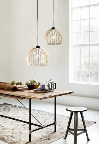 CHINO schöne Pendelleuchte aus Holz Lamellen. Schöne Lichtwirkung. Der Einsatz von dekorativem Filament Leuchtmittel erhöht die Optik.
