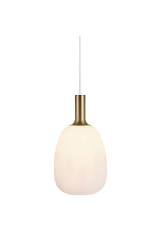 Die elegante, edle Pendelleuchte Alton verleiht einen glamurösen Look. Das matte Messing finisch und das stimmige Opal Glas verströmen ein Hauch von Nostalgie, sind aber modern zugleich.