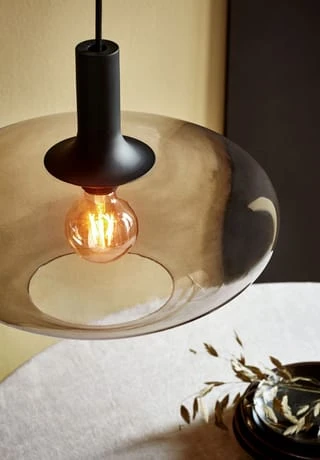 Die elegante, edle Pendelleuchte Alton verleiht einen glamurösen Look. Das schwarze finisch und das stimmige Rauch Glas verströmen ein Hauch von Nostalgie, sind aber modern zugleich.