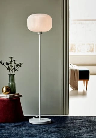 Milford ist eine dekorative Serie, bei der das opalweiße Glas für eine ganz besondere Optik sorgt. Die Kombination der organischen Formen und der gerillten transparenten Oberfläche schafft Eleganz und beleuchtet den Raum mit einem weichen und warmen Licht.