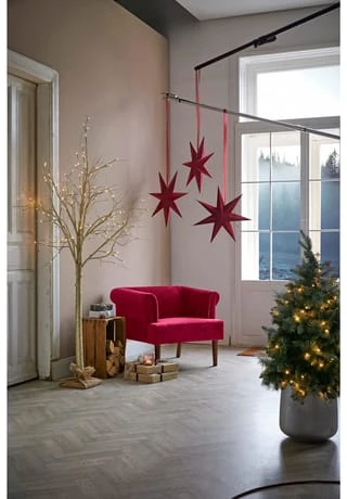 Der dekorative Lichterbaum erstrahlt durch 132 LEDs in einem warmweißen Licht und ist mit 210 cm Höhe ein beeindruckendes Dekoobjekt, nicht nur zur Weihnachtszeit