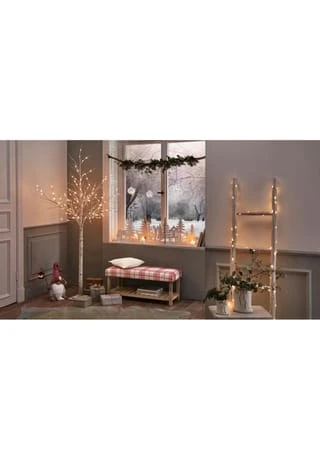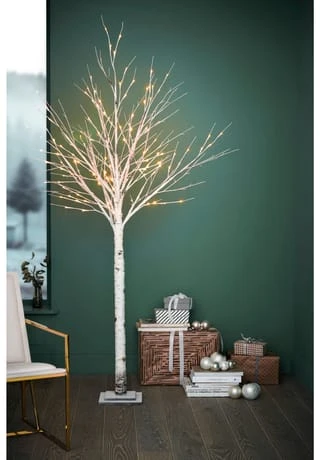 Dekorative Birke mit 132 warmweiß leuchtenden LEDs.