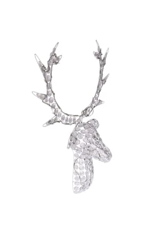 Der dekorative Hirschkopf aus Metallstreben, ist mit Kunststoff-Kristallen verziert und ein absoluter Hingucker an jeder Wand