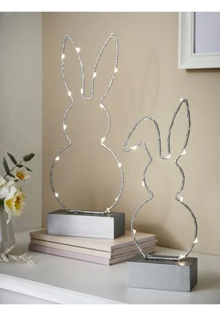 Die Hasen-Silhouetten sind mit je einer warmweißen Mini-LED-Lichterkette beleuchtet