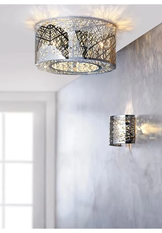 Durch die im Inneren befestigten Glaskristalle wird das Licht dieser hübschen Wandleuchte gebrochen.