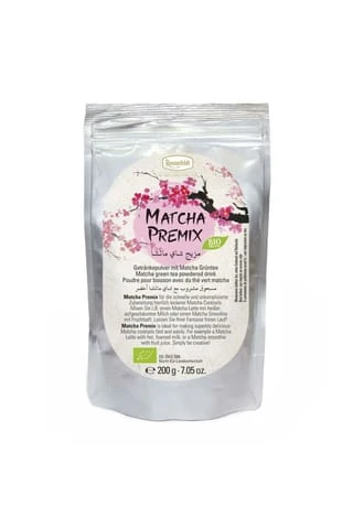 Der neue Matcha Premix. Die zeitgemäße Ergänzung zum Klassiker – schnell und unkompliziert zubereitet. Als Matcha Latte mit geschäumter Milch ein Genuss. In ein Glas Matcha Premix geben, heißes Wasser u. aufgeschäumte Milch – Fertig. Kontrollstelle:DE-ÖKO-037