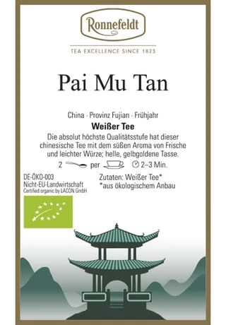 China Frühling/Sommer: Absolut höchste Qualitätsstufe hat dieser weißblättrige chinesische Tee mit dem süßen Aroma von Frische und leichter Würze; helle, jadegrüne Tasse. Kontrollstelle:DE-ÖKO-037 Mehr weiße Tee’s finden Sie in der Rubrik „Raritäten“!