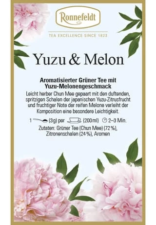 Leicht herber Chun Mee gepaart mit den duftenden, spritzigen Schalen der japanischen Yuzu-Zitrusfrucht und fruchtiger Note der reifen Melone verleiht der Komposition eine besondere Leichtigkeit.